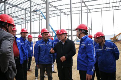 視察現場,程并強認真聽取了項目進展情況,對項目部保證工期進度、加強質量管理及安全文明施工等工作給予了充分肯定,尤其稱贊了項目部員工放棄春節假期全力奮戰的精神,并對項目全體員工所作出的貢獻表示感謝。在隨后的座談會上,程并強指出,新能源汽車工業園項目是國家戰略層面上的新型產業項目,是國家重要的產業升級項目,也是中國知名制造企業投資興建的項目,受到國家及中國產業界的高度關注,同時也提升了中國五冶集團的知名度和品牌形象,擴大了企業影響力。他要求項目團隊要繼續發揚“一天也不耽誤,一天也不懈怠”的中冶精神,再接再厲,以“嚴細新實”的工作作風,統一協調資源,合理安排部署,科學組織施工,快速推進項目建設,為業主提供高效優質的服務。