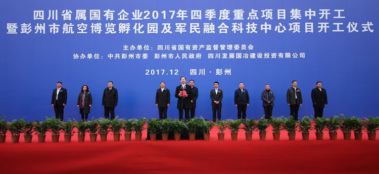 12月12日,按照四川省委、省政府“項目年”工作部署,四川省屬國有企業2017年四季度重點項目集中開工儀式在公司彭州市航空博覽孵化園及軍民融合科技中心項目現場舉行。四川省國資委主任徐進、四川發展(控股)有限責任公司董事長王鳳朝,成都市國資委、彭州市和有關省屬國有企業負責人出席開工儀式,集團公司董事、總經理、黨委副書記朱永繁出席開工儀式。