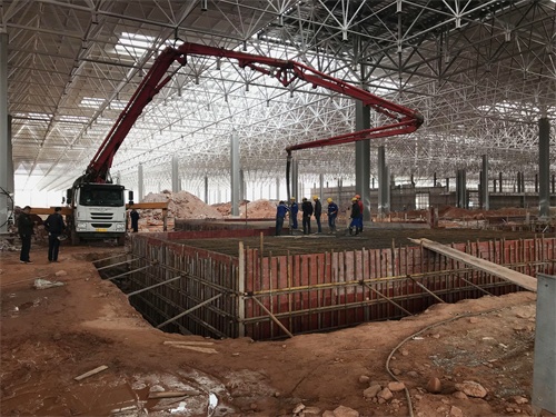 當人們忙著掃墓祭祖、踏青郊游的時候,江西億維汽車項目工程正處于工程施工最忙碌的階段,為確保設備按時進場、項目的順利竣工,現場一片忙碌的景象:地坪鋼筋的綁扎、混凝土的澆筑、墻體砌筑、屋面面板的鋪設、保溫巖棉防水卷材的鋪設等。