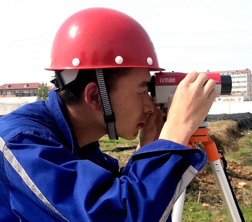 寶鋼工程公司 寶鋼一二燒結整合大修項目測量員進行現場螺栓定位復測