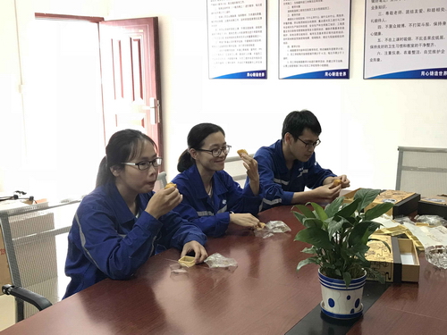 四公司在現(xiàn)場(chǎng)吃月餅慶祝中秋