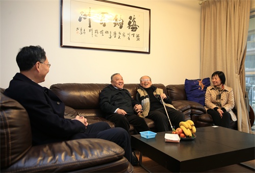 在于東海家中,程并強向于老親切拜年,表示于老是公司的老勞模,也是公司70年發展歷程的親歷者和見證者,感謝他對公司做出的貢獻,祝他身體健康。