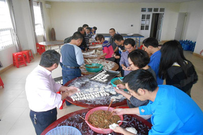 活動前,大家做了很多準備工作。一切就緒,大家紛紛捋起衣袖,揉面、和餡,切段、搟皮,各有分工,其樂融融。大家來自五湖四海,包法各具地方特色,包出來的餃子也各式各樣。女同志心靈手巧,包餃子功夫嫻熟,包出的餃子精美別致,大家拍手叫絕;男同志手藝略顯生疏,卻不甘落后,不滿足于傳統餃子的形狀,試著玩起各種花樣。頃刻間,獨具特色的花式餃子紛紛呈現在大家面前,于是又彼此“評頭論足”起來。當現場工地上的同事下班回到食堂時,一盆盆熱騰騰的餃子已端到了桌上,品嘗著同事們親手包的餃子,大家吃在嘴里,甜在心上,感受到了越南臺塑項目部這個大家庭的幸福和溫暖。??(李娜娜)